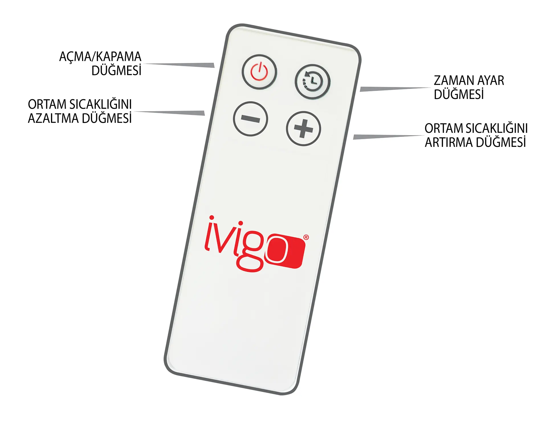 İvigo fanlı ısıtıcılar standart olarak plastik ayaklar ile sunulmaktadır. Isıtıcı, üzerinde bulunan katlanabilir taşıma kulpu ile de kolayca taşınabilir.